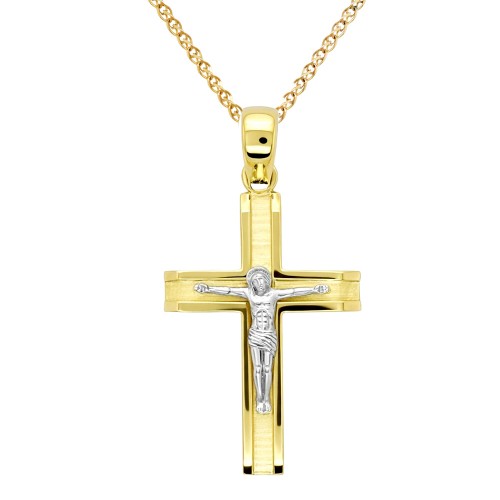 Χρυσός ανδρικός βαπτιστικός σταυρός Κ9 με αλυσίδα