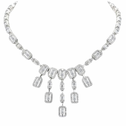 Κολιέ με αλυσίδα και statement μέρος, από ασήμι 925, με κρεμαστά ορθογώνια μοτίφ που διακοσμούνται από ζιργκόν λευκές πέτρες. Γίνεται σετ με το αντίστοιχο βραχιόλι, σκουλαρίκια και δαχτυλίδι.