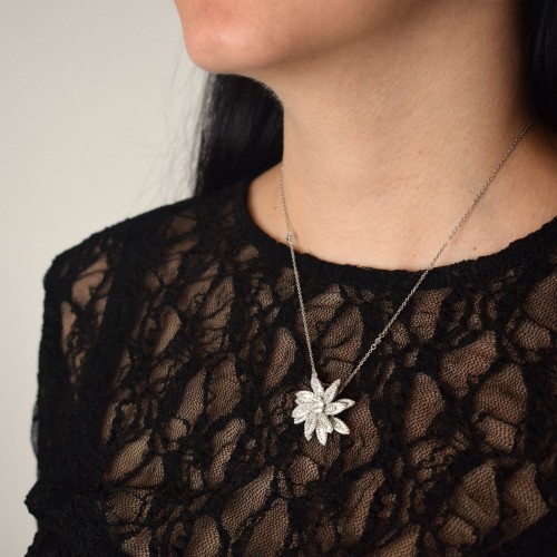 Ασημένιο κολιέ λουλούδι 925 με ζιργκόν