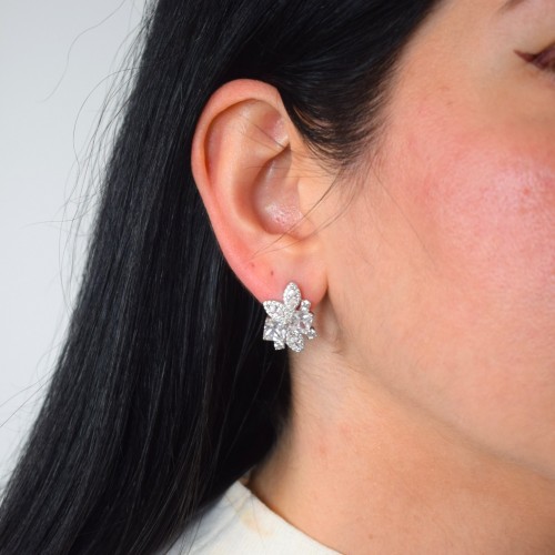 Λαμπερά σκουλαρίκια από ασήμι 925, με καρέ, στρογγυλές και navette πέτρες ζιργκόν. Μοντέρνα και εντυπωσιακά, θα δώσουν μία επιπλέον πινελιά λάμψης και στιλ στο νυφικό σας outfit αλλά και σε άλλες περιστάσεις,