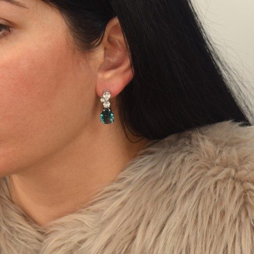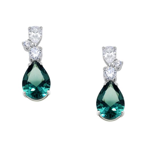 Σκουλαρίκια σταγόνες από ασήμι 925, με σμαραγδί και λευκά ζιργκόν. Κομψά και λαμπερά επίσημα σκουλαρίκια που θα φωτίσουν το πρόσωπό σας!