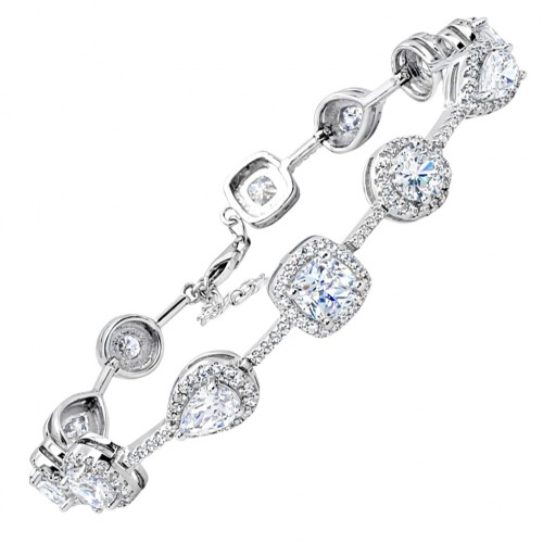 Λαμπερό ασημένιο βραχιόλι με μοτίφ σε σχέδιο δάκρυ, τετράγωνο και στρογγυλό, διακοσμημένο με λευκές πέτρες ζιργκόν. Το μήκος του ρυθμίζεται.