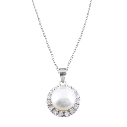 Κλασσικό κολιέ με πέρλα, από ασήμι 925. Διακοσμείται με πέτρες ζιργκόν και συνδυάζεται ιδανικά με τα όμοια σκουλαρίκια.
