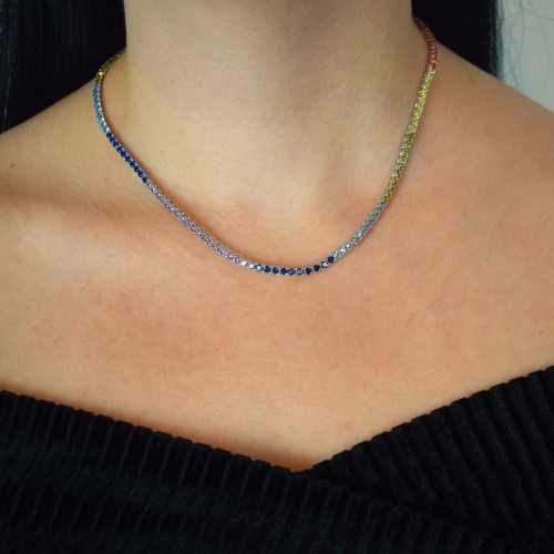 Ασημένιο κολιέ ριβιέρα rainbow 925 με ζιργκόν