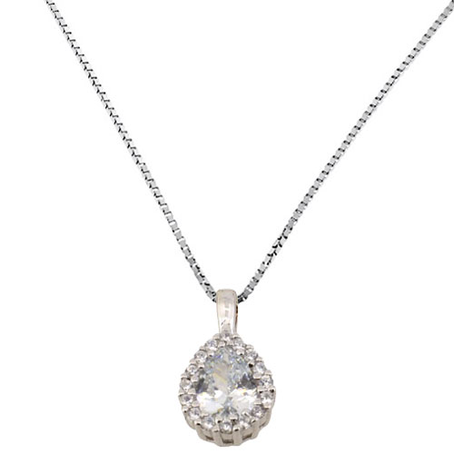 Κολιέ σταγόνα από ασήμι 925, με λευκά ζιργκόν. Γίνεται σετ με τα αντίστοιχα σκουλαρίκια και δαχτυλίδι.