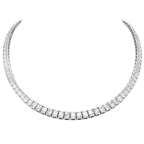 Κομψή ριβιέρα λαιμού από ασήμι 925, με καρέ ζιργκόν πέτρες μέσα σε καστονάκια. Κλασικό και λαμπερό κολιέ για επίσημες περιστάσεις!