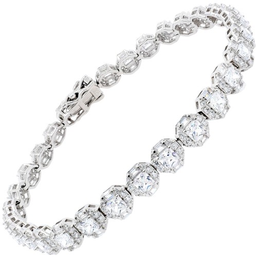 Βραχιόλι “ριβιέρα” από ασήμι 925, με οκτάγωνα μοτίφ που διακοσμούνται με ζιργκόν λευκές πέτρες.
