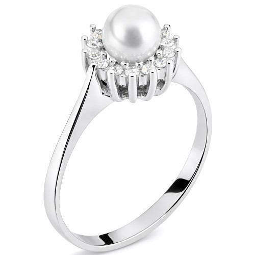 Λευκόχρυσο δαχτυλίδι Κ14 με μαργαριτάρι και ζιργκόν
