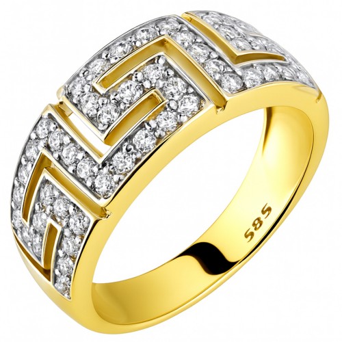 Ενα πολύ εντυπωσιακό δαχτυλίδι από κίτρινο χρυσό Κ14, με τον κλασικό μαίανδρο, στολισμένο με ζιργκόν!