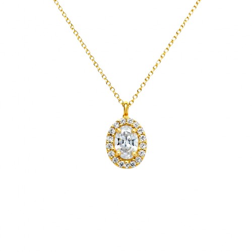 Χρυσό κολιέ οβάλ ροζέτα Κ14 με ζιργκόν