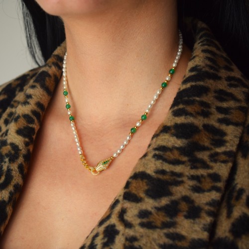 Κολιέ με πέρλες και ασήμι 925 επιχρυσωμένο