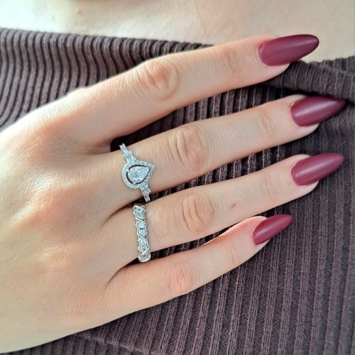 Λευκόχρυσο δαχτυλίδι σταγόνα Κ9 με ζιργκόν