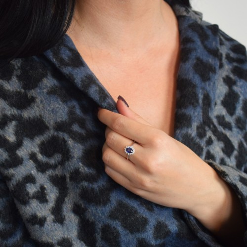 Λευκόχρυσο δαχτυλίδι Κ18 με ζαφείρι και διαμάντια