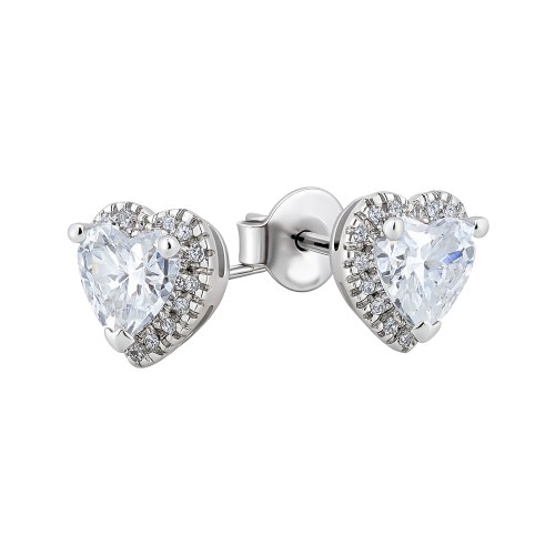 Λευκόχρυσα σκουλαρίκια καρδιές Κ14 με ζιργκόν