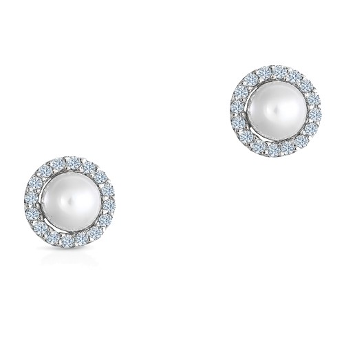 Λευκόχρυσα σκουλαρίκια ροζέτες Κ14 με μαργαριτάρια