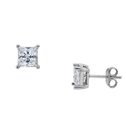 Μονόπετρα ασημένια σκουλαρίκια με καρέ ζιργκόν πέτρες, ιδανικά για να ολοκληρώσουν το office style σας.