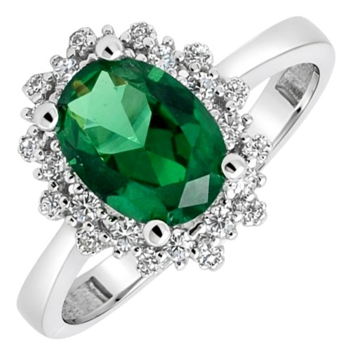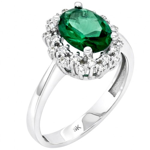 Λευκόχρυσο οβάλ μονόπετρο ροζέτα Κ9 με ζιργκόν
