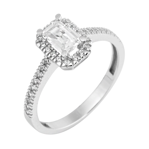 Λευκόχρυσο μονόπετρο δαχτυλίδι Κ14 με ζιργκόν