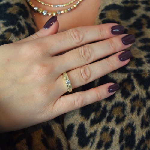 Χρυσό μονόπετρο δαχτυλίδι Κ9 με ζιργκόν