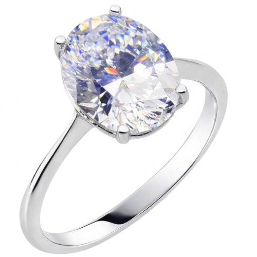 Μονόπετρο με οβάλ ζιργκόν από λευκό χρυσό Κ14