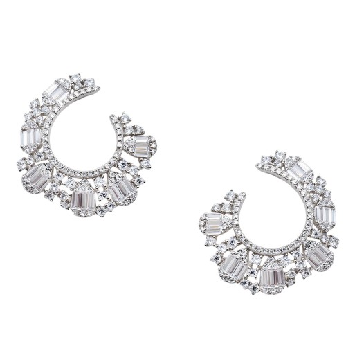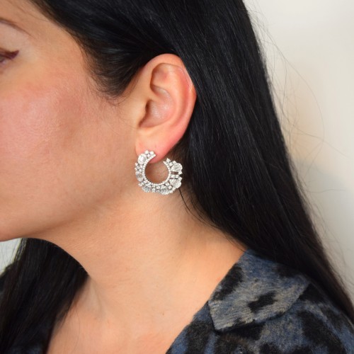 Σκουλαρίκια γάμου σε σχήμα πέταλο, από ασήμι 925. Οι διαφορετικές κοπές των πετρών προσδίδουν ένα λαμπερό αποτέλεσμα, καθιστώντας το εξαιρετικό και για άλλες επίσημες περιστάσεις.
