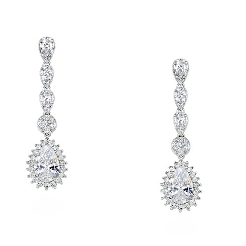 Σκουλαρίκια γάμου από ασήμι 925, με πέτρες ζιργκόν που καταλήγουν σε σταγόνες. Μπορείτε να συνδυάσετε το κόσμημα με το αντίστοιχο κολιέ, βραχιόλι και δαχτυλίδι.