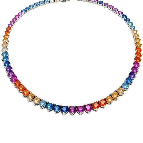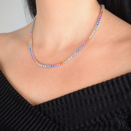 Ασημένιο κολιέ ριβιέρα rainbow 925 με ζιργκόν