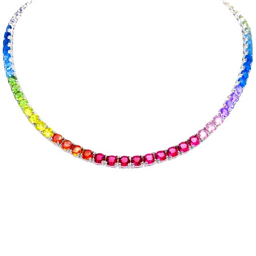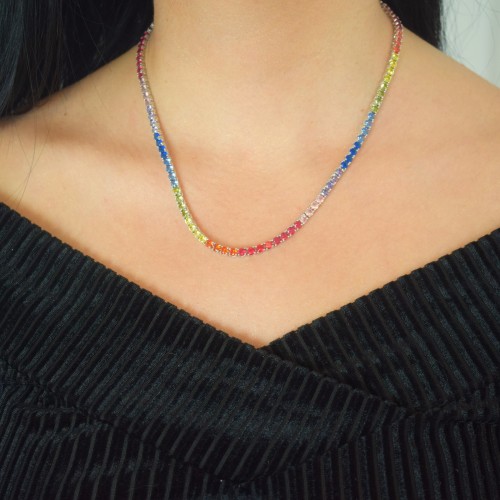Ασημένιο κολιέ ριβιέρα rainbow 925 με ζιργκόν