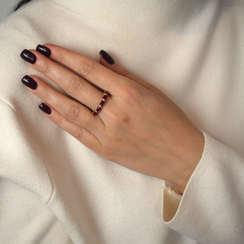 Χρυσό σειρέ δαχτυλίδι Κ18 με ρουμπίνια και διαμάντια