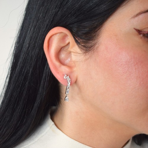 Κρεμαατά σκουλαρίκια “σταγόνες” από ασήμι 925, με ζιργκόν πέτρες σε 5 διαφορετικές κοπές. Ένα κόσμημα που μπορεί να σας συντροφεύσει στο γάμο σας αλλά και σε άλλες επίσημες περιστάσεις.