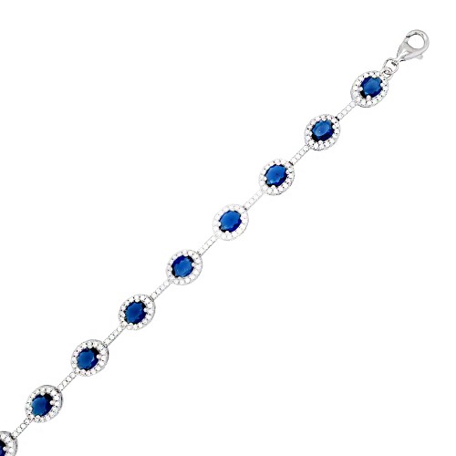 Λαμπερό βραχιόλι “ριβιέρα” από 925 ασήμι, με μπλε οβάλ και λευκές στρογγυλές πέτρες ζιργκόν. Κλασικό κόσμημα για τις λάτρεις των ριβιερών.