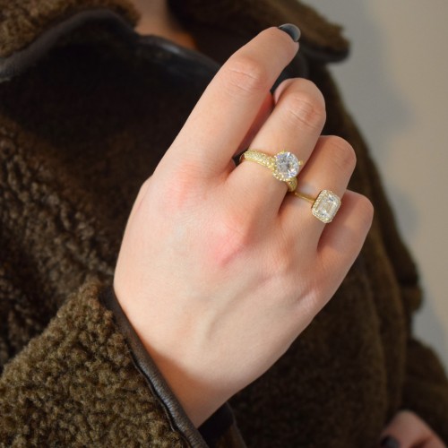 Χρυσό δαχτυλίδι ορθογώνια ροζέτα Κ14 με ζιργκόν