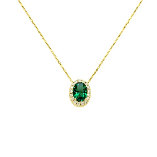 Χρυσό κολιέ οβάλ ροζέτα Κ9 με ζιργκόν