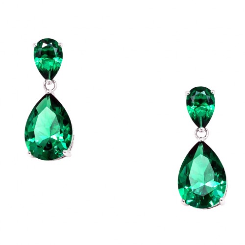 Κρεμαστά ασημένια σκουλαρίκια με πράσινες σταγόνες ζιργκόν. Κλασικό κόσμημα που φοριέται σε επίσημες εμφανίσεις.