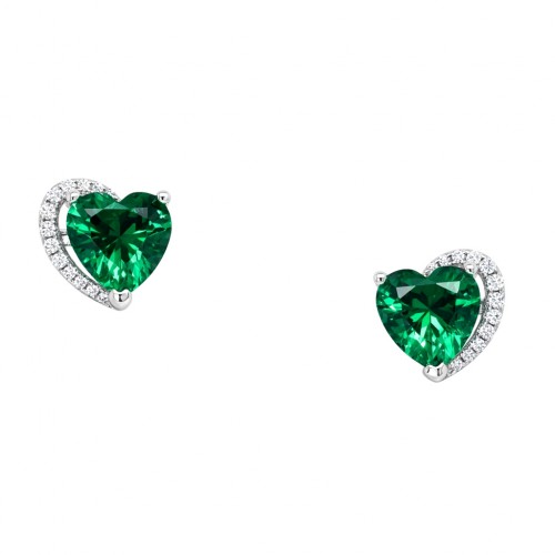 Καρφωτά ασημένια σκουλαρίκια καρδιές, με πράσινα και λευκά ζιργκόν. Ιδανικά για κάθε στιγμή της ημέρας.