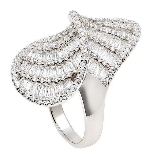 Δαχτυλίδι ασημένιο με ορθογώνια και στρογγυλά ζιργκόν, σε εντυπωσιακό σχεδιασμό. Κατάλληλο για να φορεθεί με επίσημα σύνολα, ως ένα statement κόσμημα.