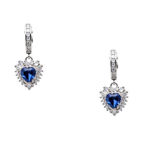 Κρεμαστά σκουλαρίκια καρδιές, από ασήμι 925, με μπλε και λευκές ζιργκόν πέτρες. Μπορείτε να τα φορέσετε με το αντίστοιχο κολιέ και δαχτυλίδι.