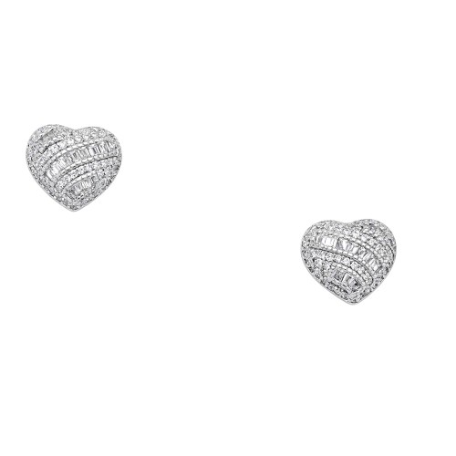 Ιδιαίτερες καρδιές σκουλαρίκια, σε πομπέ σχέδιο, με λευκά ζιργκόν σε στρογγυλή και ορθογώνια κοπή. Ιδανικά για να δωριστούν σε αγαπημένο σας πρόσωπο.