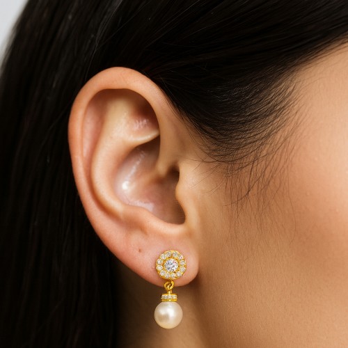 -22% Χρυσά κρεμαστά σκουλαρίκια με μαργαριτάρια Κ9