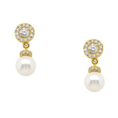 Χρυσά κρεμαστά σκουλαρίκια με μαργαριτάρια Κ9