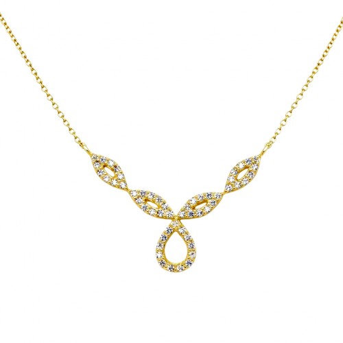Ιδιαίτερο κολιέ σε 9 καράτια με λεπτή αλυσίδα και εντυπωσιακό σχέδιο με λευκές πέτρες ζιργκόν.