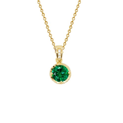 Χρυσό μενταγιόν 14 καρατίων σε στρογγυλό σχήμα, με πράσινα και λευκά ζιργκόν. Συνδυάζεται με τα αντίστοιχα σκουλαρίκια και συνοδεύεται από χρυσή αλυσίδα 14κ.