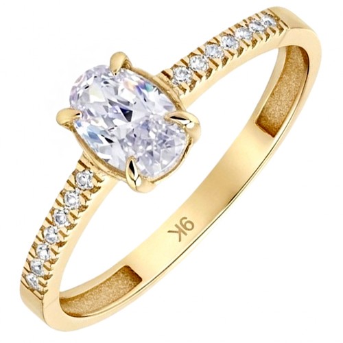 Χρυσό οβάλ μονόπετρο δαχτυλίδι Κ9 με ζιργκόν