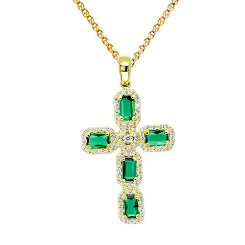 Ένας εντυπωσιακός σταυρός-κόσμημα σε 9 καράτια, διακοσμημένος με μεγάλα πράσινα ζιργκόν και μικρότερα λευκά! Είναι υπέροχο δώρο για αρραβώνα αλλά και επέτειο. Η τιμή περιλαμβάνει και την αλυσίδα του.