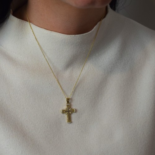 Χρυσός γυναικείος βαπτιστικός σταυρός Κ14 με αλυσίδα